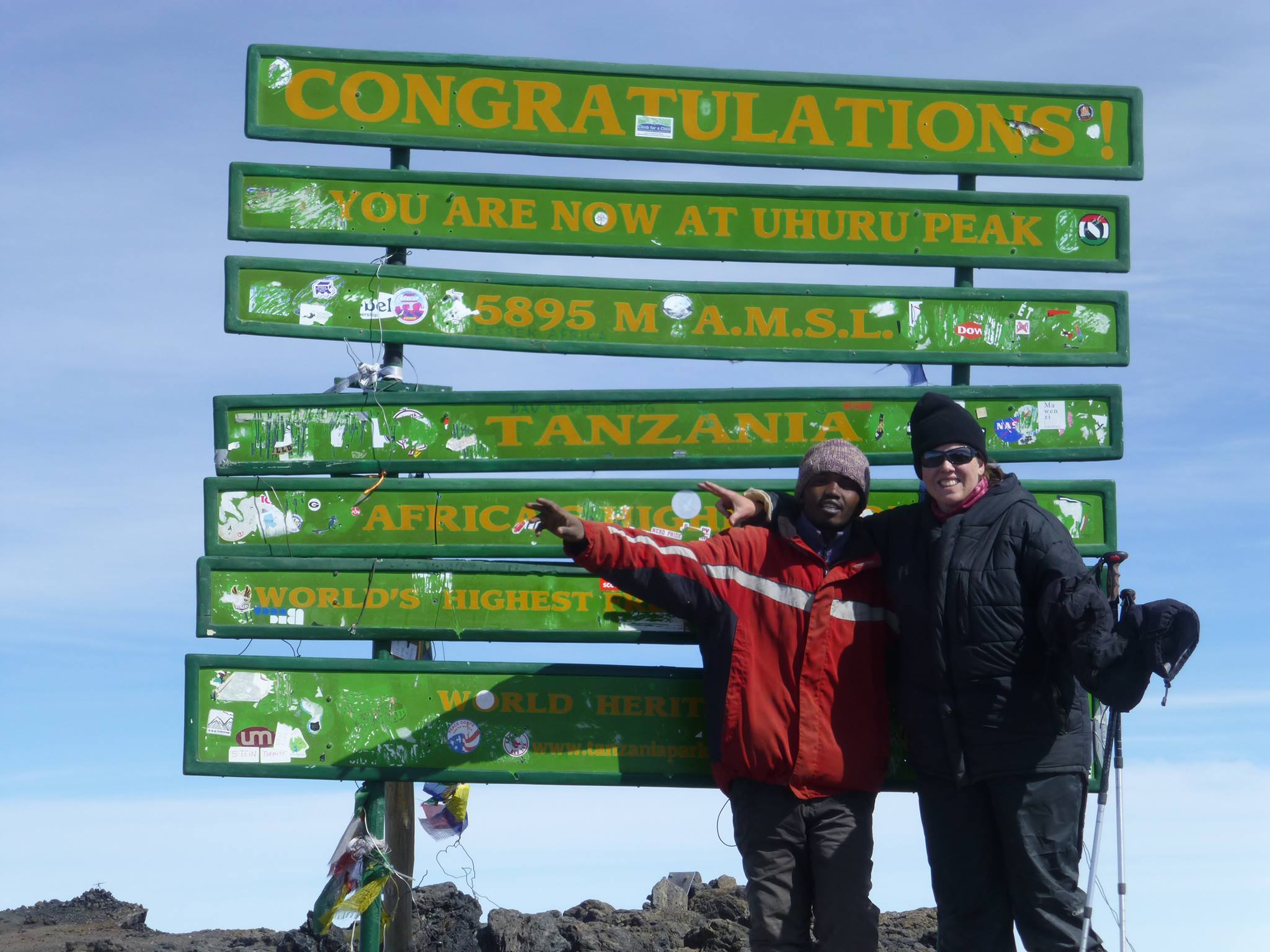 On top of Mt. Kilimanjaro in Tanzania with my porter, John