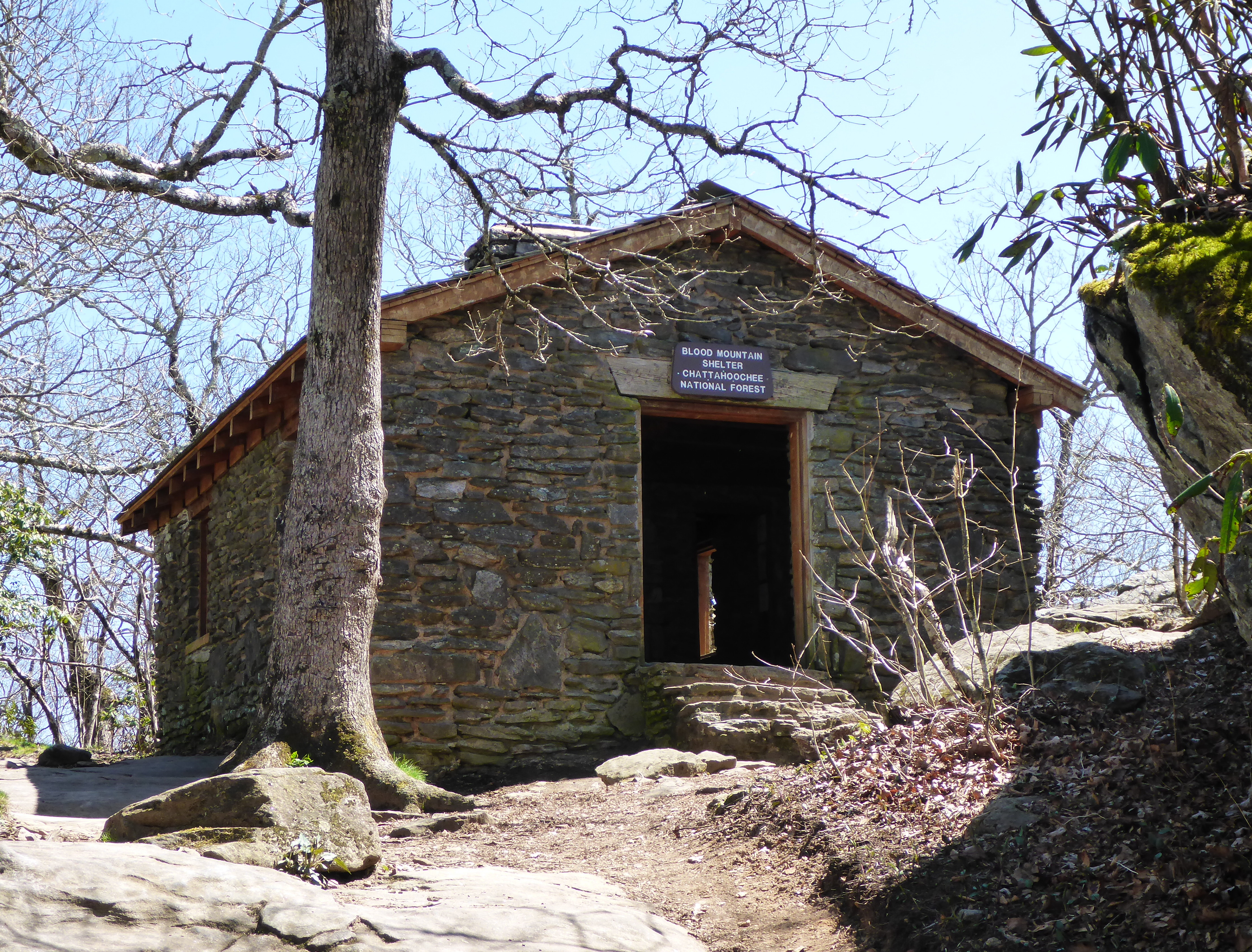 The Appalachian Trail runs right through the center of the building here before heading into Raven Cliffs Wilderness.