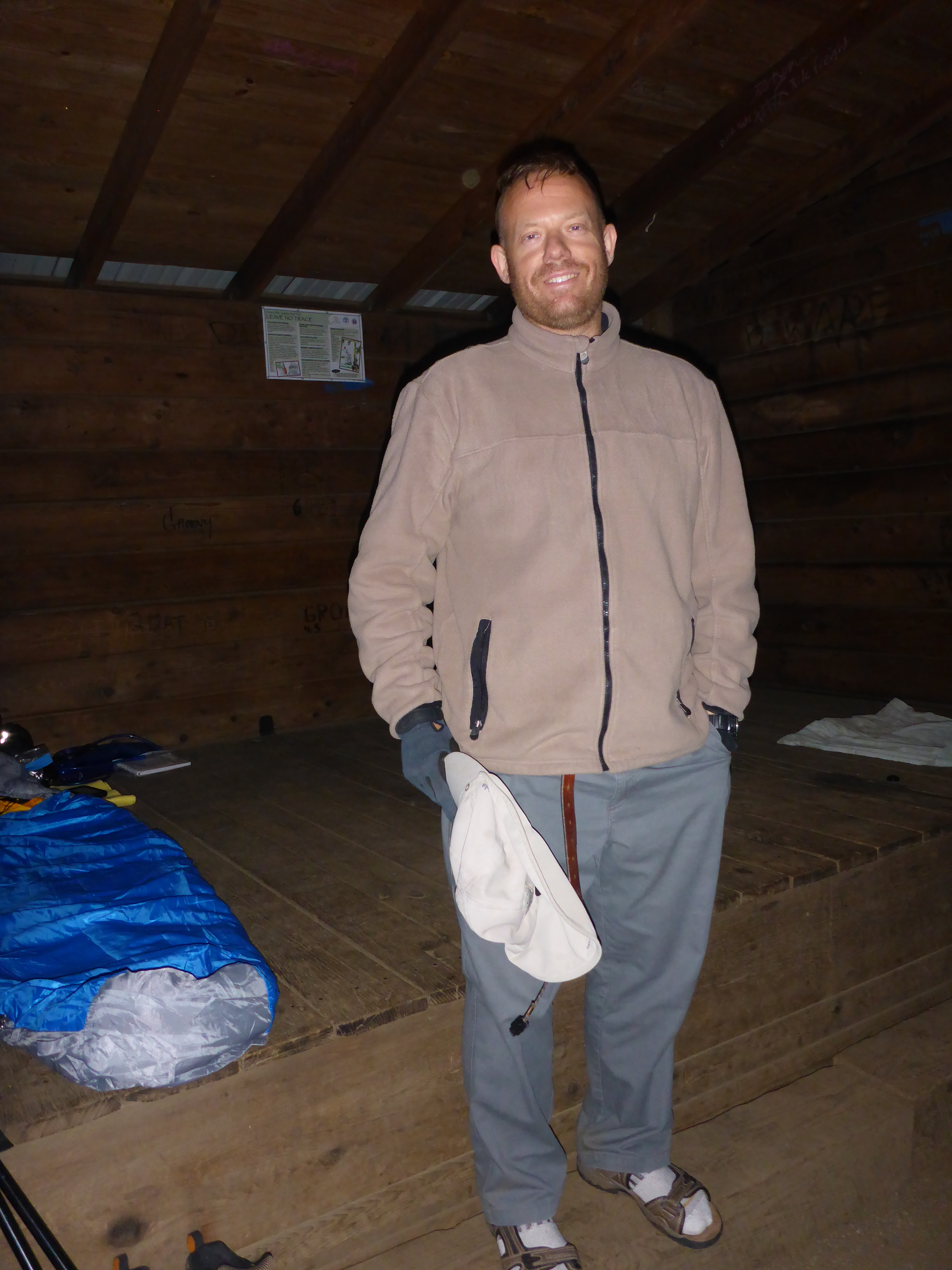 Sam had left bright and early, but mystery sleeping hiker from the back corner was hanging out on the couch when I went out into the common area. In retrospect, I shouldn’t have been surprised to see it was Bear Grylls. Long time no see, Bear! He’d slept for 17 hours.